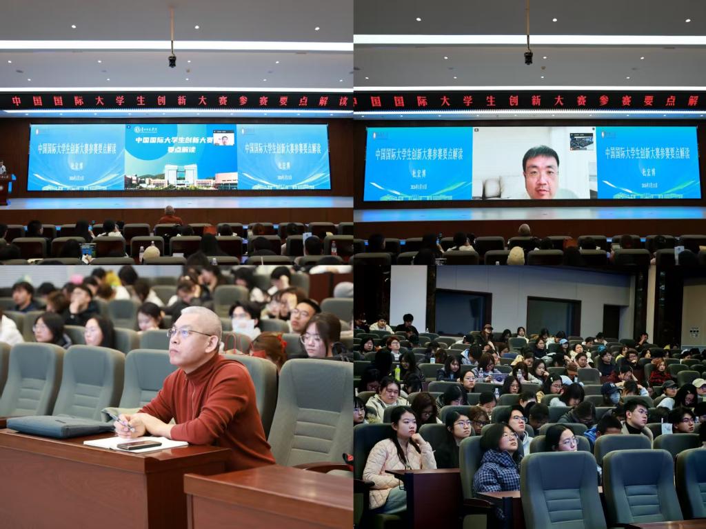 杜宏博教授以《中国国际大学生创新大赛参赛要点解读》为主题,围绕大赛核心理念进行深度阐释,并结合大量优质实战案例,从四大维度为我校学生开展系统指导。解读大赛组织形式、规则政策与参赛要求,帮助同学们明确备赛方向;分析国奖青红赛道的典型案例,梳理赛事推进流程,剖析备赛常见问题与解决路径,并以“十二个一”“三个为什么”为框架,清晰勾勒出参赛行动蓝图;详细讲解项目路演答辩技巧,助力参赛项目全方位展示;最后结合中国国际大学生创新大赛核心要求与发展趋势,提出针对性备赛方案。互动交流环节,同学们踊跃提问、积极交流,杜宏博教授逐一细致解答,现场氛围热烈活跃。